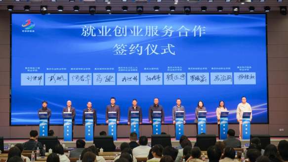 在签约仪式上,永川区人力资源和社会保障局与重庆文理学院、重庆城市科技学院、重庆城市职业学院等9所当地高校签署合作协议,进一步巩固政校企协同育人机制。三名来自不同行业的优秀就业创业代表现场分享在永川的发展经历,以真实故事展现区域良好的就业生态。