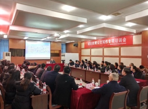 培训当天,唐敖老师深入浅出,讲述了有关公文写作的基础知识,并详细阐述了公文的规范格式,将公文文头、正文、结尾的写作方法详尽叙述。而后,唐敖老师又与参训同事互动,将自己总结的有关公文写作艺术的问题一一道来,他说,公文写作一定要显示公文的主旨,要注意“标题揭旨、一锤定音;起句立意、开门见山;交代缘由、引出主旨;头尾呼应、显示中心”,并要求公文写作人员,一定要随时随地的注意材料的收集积累,要根据客观标准鉴别选择材料,要注重公文中的用语艺术。在唐敖老师不辞辛苦的教导中,同事们的学习兴趣也非常浓厚,现场气氛也是很热烈,同事们就平时在公文写作中遇到的一些问题向唐敖老师请教,而唐敖老师也是认真负责的为大家一一解答。