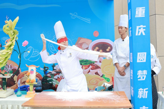 活动现场特设非遗文化展示区,高校师生现场演示永川非物质文化遗产——油茶制作技艺与太极蒙眼拉面绝技,同步开展中华花艺传统插花表演。求职者在品味地方饮食文化精髓的同时,还可亲手体验花艺制作,感受非遗与现代生活的融合之美。