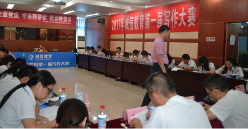 017年6月29日上午11:00,重庆市合川区诚信职业技术培训学校“诚信教育第一届写作大赛”在学校多功能厅如期举行,此次比赛由行政人事部主办,旨在提高全体员工的学习兴趣,加强写作能力,促进文化交流与企业宣传,展现员工的写作水平,丰富员工们的业余文化生活。比赛开始前,行政人事部对会场做了比较精心的准备,同时对各个参赛选手进行抽签编号入座,以严格考场秩序,确保公平公正。比赛场上,选手们文思泉涌,挥笔写作,只为将最好的作品展现在各位面前。